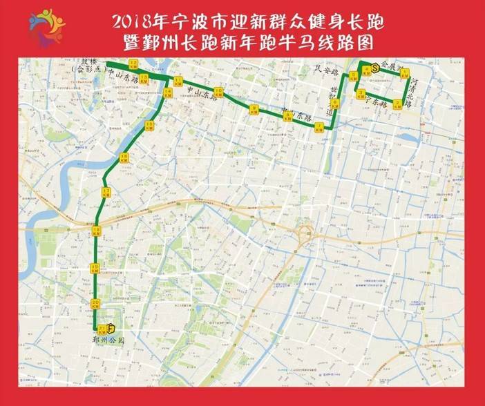 1、健身跑,仅参加宁波市迎新群众健身长跑活动5公里活动线路: