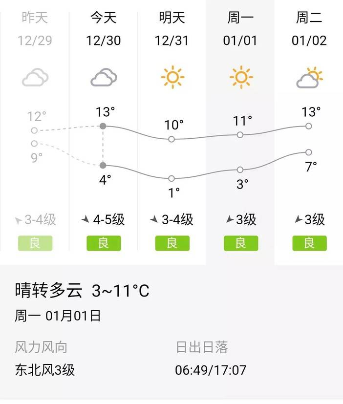难得元旦当天这么好天气:晴,3-11°C,建议穿一件长袖(如2016太白湖越野赛的赛服)打底,外套会服。