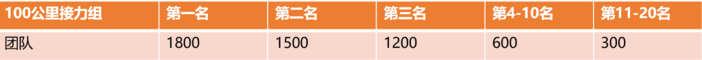 100公里接力组(一队6人,必须1名及以上女性选手)