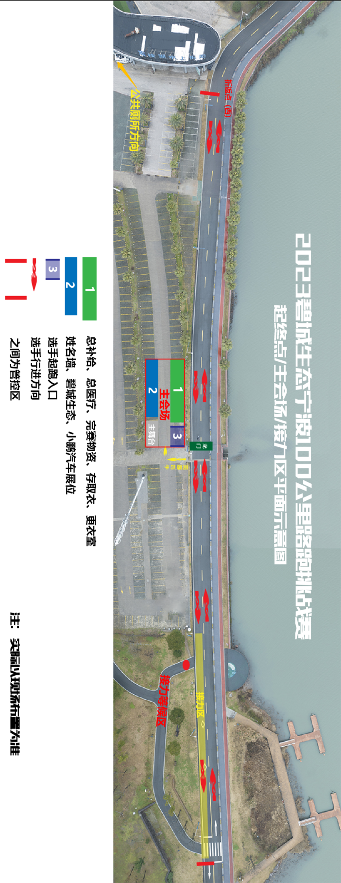 主舞台、碧城生态位、姓名墙、小鹏汽车展位、鄞州长跑位、轻功体育位(体检纪念品领取)、存包、完赛物资、总医疗、总补给、更衣室