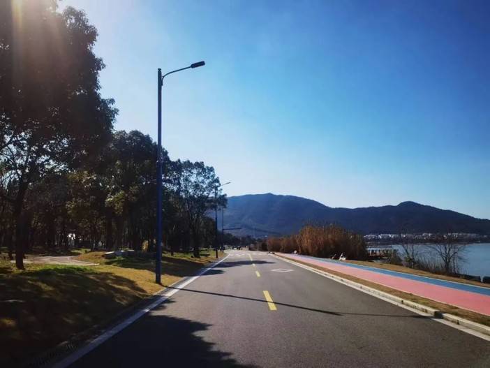 东钱湖湖畔马拉松大道(水上乐园-韩岭)2.5公里折返1圈,共4个往返,20公里。