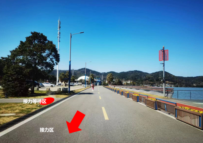 第1棒:龙门出发→韩岭端(厕所不到)折返点(东)折返→龙门→继续向前100余米水上乐园标牌下折返点(西)折返→循环4个来回→最后一圈:折返点(西)折返→龙门→向东100米进入接力区交接棒;