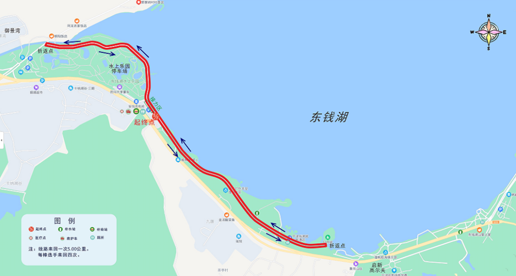(同上届)东钱湖南岸停车场→白色栈桥前(东端折返)→东钱湖南岸停车场→郭家峙村(西端折返)→东钱湖南岸停车场