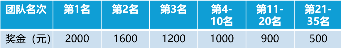 团队前三名现场颁发奖杯,第4-10名现场颁发奖盘,奖金公示后发放。奖金方案如下(按团队发放):